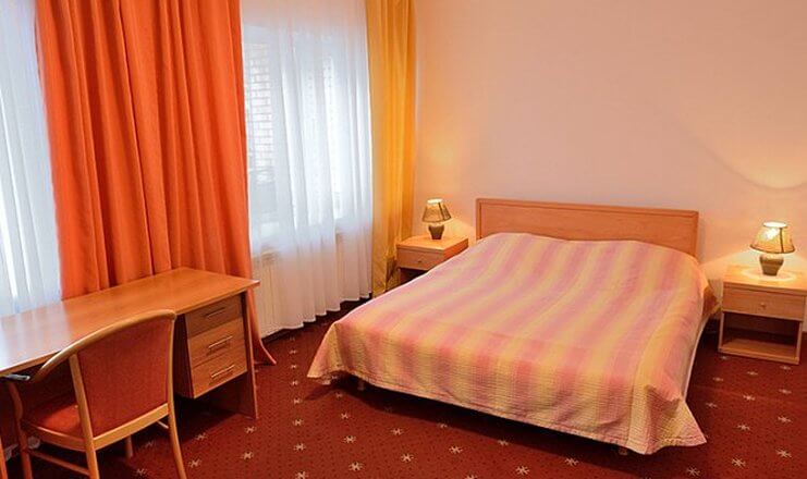 Оснащение телевизор, ванная комната, две кровати 80*200 или 120*200, холодильник, балкон, набор посуды, эл.чайник, письменный стол, фен